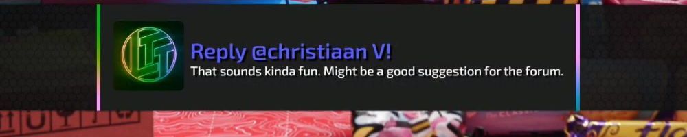 Reply @christiaan V! That sounds kinda fun. Might be a good suggestion for the forum.