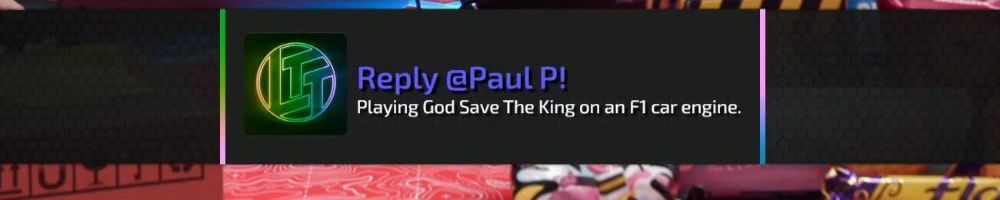 Reply @Paul P! Playing God Save The King on an F1 car engine.