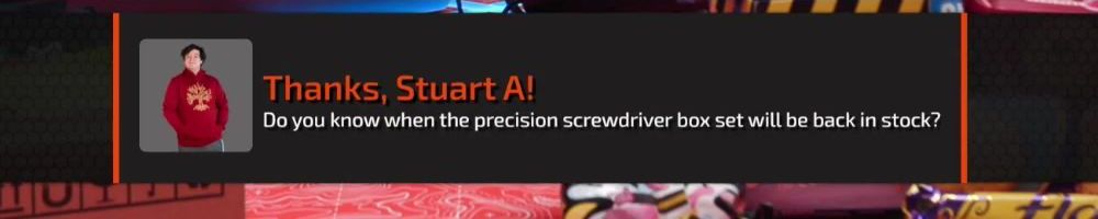 Thanks, Stuart A! Do you know when the precision screwdriver box set will be back in stock?
