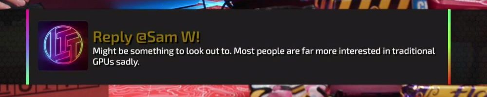 Reply @Sam W! Might be something to look out to. Most people are far more interested in traditional GPUs sadly.
