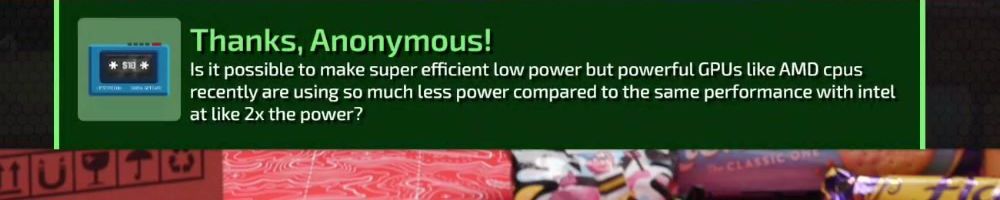 Thanks, Anonymous! Is it possible to make super efficient low power but powerful GPUs like AMD cpus recently are using so much less power compared to the same performance with intel at like 2x the power?