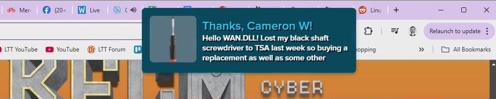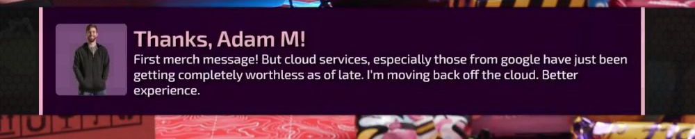 Thanks, Jessica W! Hello WAN_Early_Release.DLL! Saving money for a screwdriver until the Canada Post situation is resolved. Linus, I'm about to move home. Any cat products your squad loves? And Dan: Favorite VSTs?