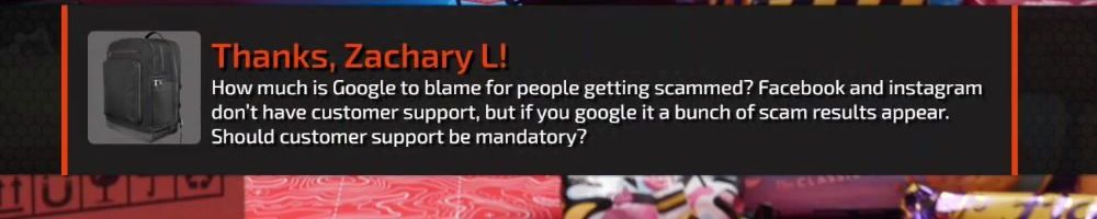 Thanks, Zachary L! How much is Google to blame for people getting scammed? Facebook and instagram don't have customer support, but if you google it a bunch of scam results appear. Should customer support be mandatory?