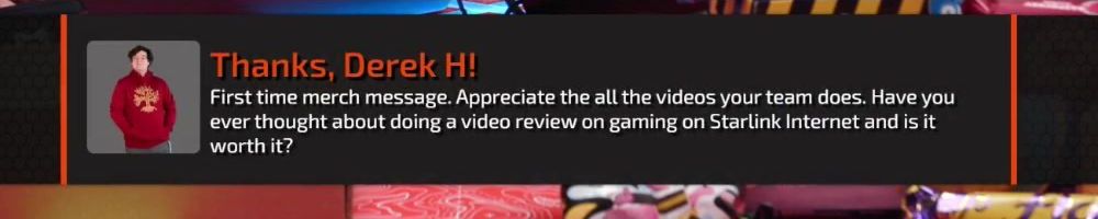 Thanks, Derek H! First time merch message. Appreciate the all the videos your team does. Have you ever thought about doing a video review on gaming on Starlink Internet and is it worth it?