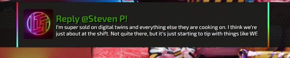 Reply @Steven P! I'm super sold on digital twins and everything else they are cooking on. I think we're just about at the shift. Not quite there, but it's just starting to tip with things like WE