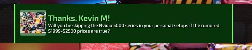 Thanks, Kevin M! Will you be skipping the Nvidia 5000 series in your personal setups if the rumored $1999-$2500 prices are true?