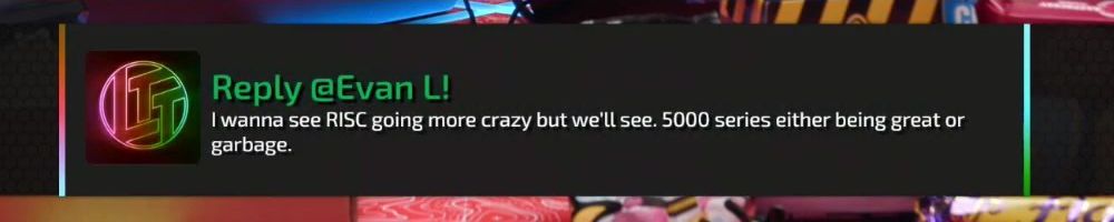 Reply @Evan L! I wanna see RISC going more crazy but we'll see. 5000 series either being great or garbage.