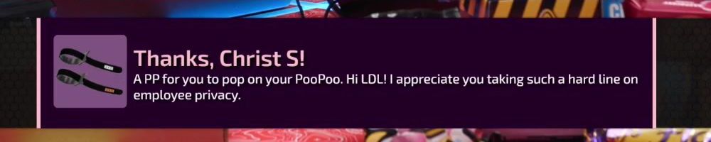 Thanks, Christ S! A PP for you to pop on your PooPoo. Hi LDL! I appreciate you taking such a hard line on employee privacy.