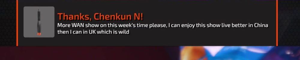Thanks, Chenkun N! More WAN show on this week's time please, I can enjoy this show live better in China then I can in UK which is wild