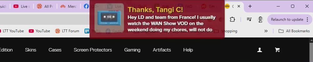 Thanks, Tangi C! Hey LD and team from France! I usually watch the WAN Show VOD on the weekend doing my chores, will not do