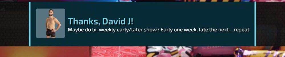Thanks, David J! Maybe do bi-weekly early/later show? Early one week, late the next... repeat