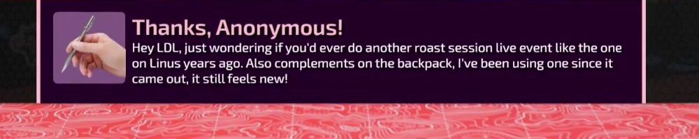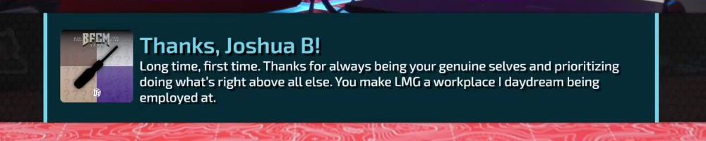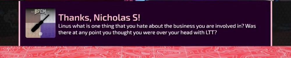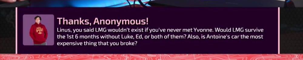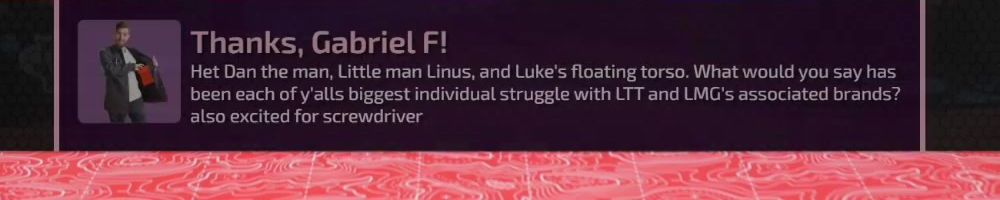 Long time, first time. Thanks for always being your genuine selves and prioritizing doing what's right above all else. You make LMG a workplace I daydream being employed at.