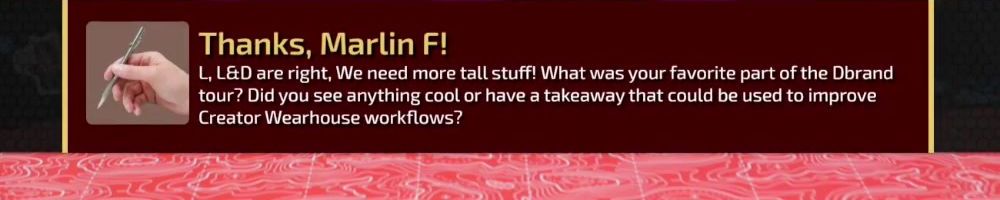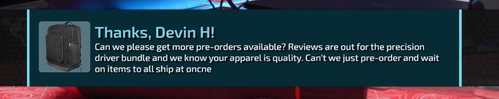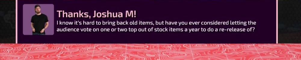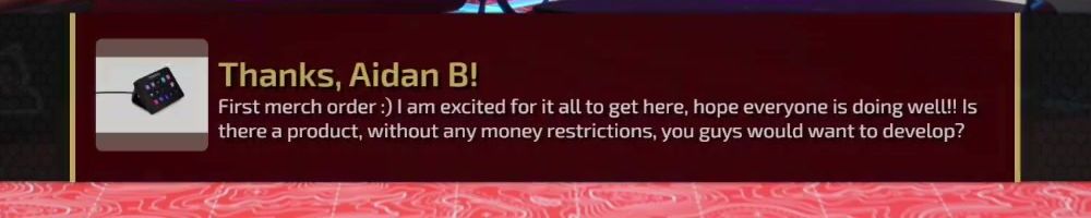 First merch order :) I am excited for it all to get here, hope everyone is doing well! Is there a product, without any money restrictions, you guys would want to develop?