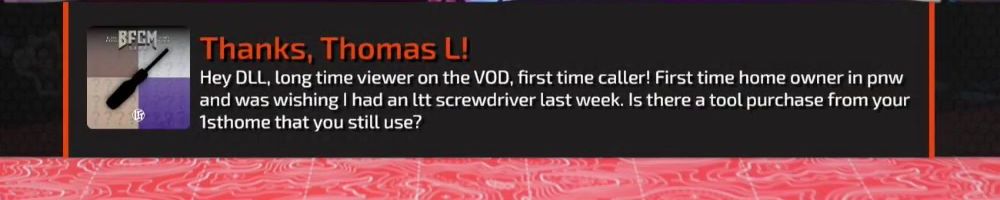 Hey DLL, long time viewer on the VOD, first time caller! First time home owner in pnw and was wishing I had an ltt screwdriver last week. Is there a tool purchase from your 1sthome that you still use?