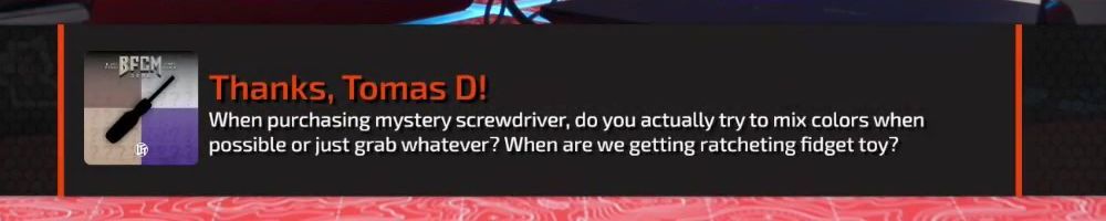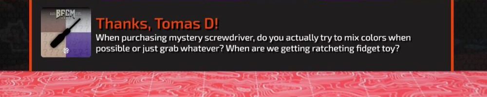 When purchasing mystery screwdriver, do you actually try to mix colors when possible or just grab whatever? When are we getting ratcheting fidget toy?