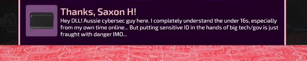 Hey DLL! Aussie cybersec guy here. I completely understand the under 16s, especially from my own time online... But putting sensitive ID in the hands of big tech/gov is just fraught with danger IMO...
