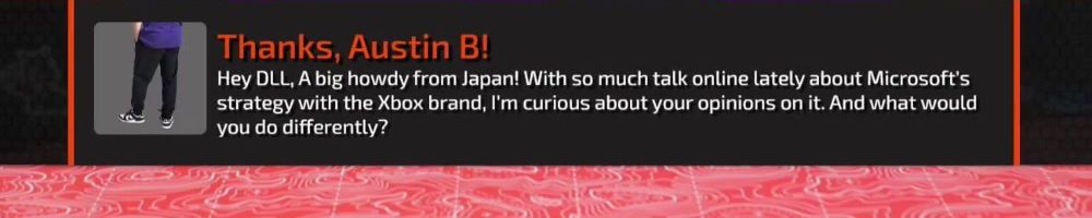 Hey DLL, A big howdy from Japan! With so much talk online lately about Microsoft's strategy with the Xbox brand, I'm curious about your opinions on it. And what would you do differently?