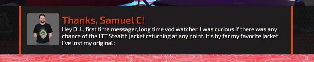 Hey DLL, first time messager, long time vod watcher. I was curious if there was any chance of the LTT Stealth jacket returning at any point. It's by far my favorite jacket I've lost my original :
