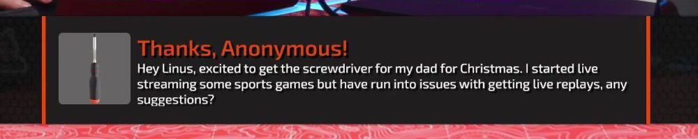 Hey Linus, excited to get the screwdriver for my dad for Christmas. I started live streaming some sports games but have run into issues with getting live replays, any suggestions?
