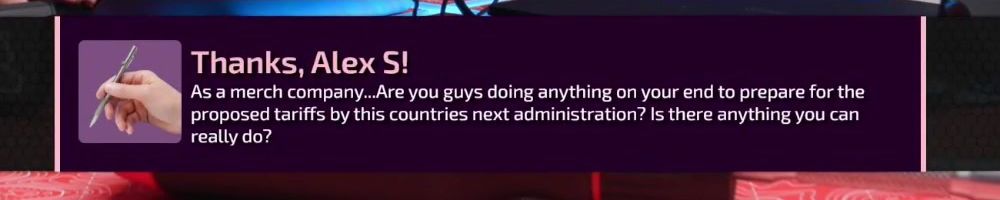 As a merch company...Are you guys doing anything on your end to prepare for the proposed tariffs by this countries next administration? Is there anything you can really do?