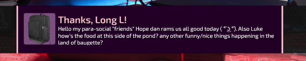Hello my para-social "friends" Hope dan rams us all good today (3°). Also Luke