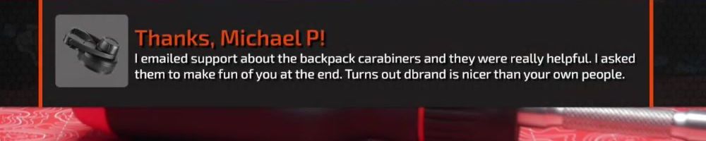 I emailed support about the backpack carabiners and they were really helpful. I asked them to make fun of you at the end. Turns out dbrand is nicer than your own people.