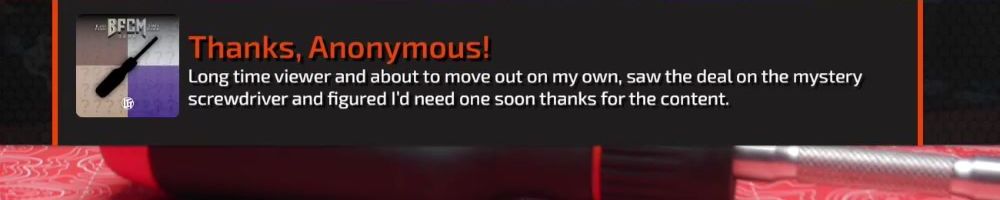 Long time viewer and about to move out on my own, saw the deal on the mystery screwdriver and figured I'd need one soon thanks for the content.