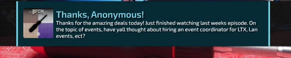 Thanks for the amazing deals today! Just finished watching last weeks episode. On