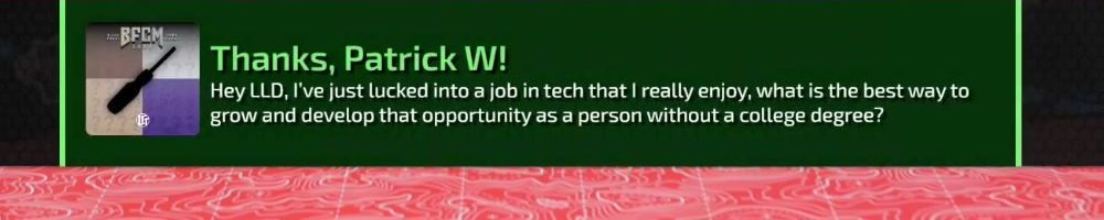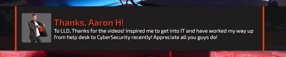To LLD, Thanks for the videos! Inspired me to get into IT and have worked my way up from help desk to CyberSecurity recently! Appreciate all you guys do!