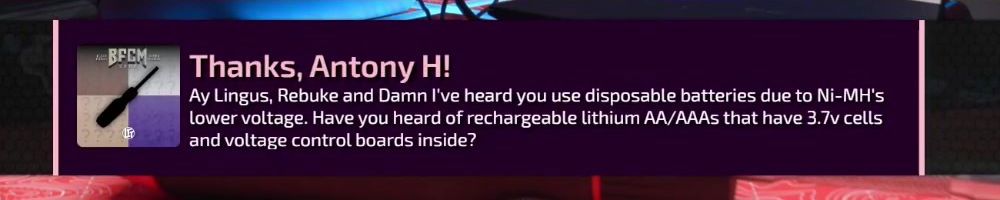 Ay Lingus, Rebuke and Damn I've heard you use disposable batteries due to Ni-MH's lower voltage. Have you heard of rechargeable lithium AA/AAAs that have 3.7v cells and voltage control boards inside?