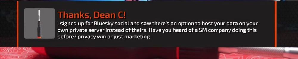 I signed up for Bluesky social and saw there's an option to host your data on your own private server instead of theirs. Have you heard of a SM company doing this before? privacy win or just marketing