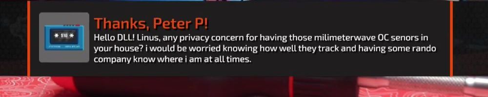 Hello DLL! Linus, any privacy concern for having those milimeterwave OC senors in