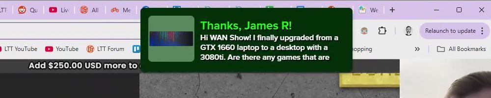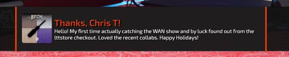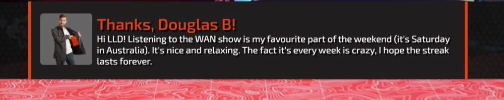 Hint: Use CTRL + F to search messages in this show, or use Whenplane's WAN Show Search tool to search for messages in all shows.