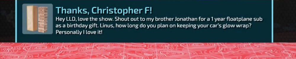 I subscribed to Floatplane only recently but I gotta say everything about it is super awesome. Give my thanks to whoever came up with the idea of it :)