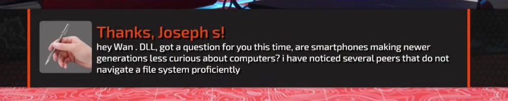Hi Wan.DLL! What do you think are the greatest drivers of curiosity in technology, and do you think these fundamental drivers differ from other fields? I ask because I forget why I fell in love w/it.