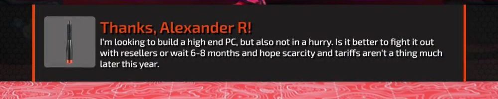I'm looking to build a high end PC, but also not in a hurry. Is it better to fight it out with resellers or wait 6-8 months and hope scarcity and tariffs aren't a thing much later this year.