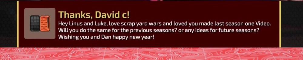 Hey Linus and Luke, love scrap yard wars and loved you made last season one Video. Will you do the same for the previous seasons? or any ideas for future seasons? Wishing you and Dan happy new year!