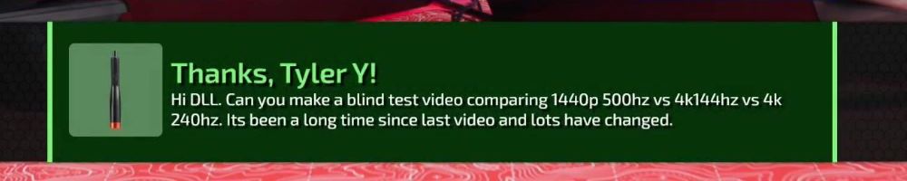 Hi DLL. Can you make a blind test video comparing 1440p 500hz vs 4k144hz vs 4k