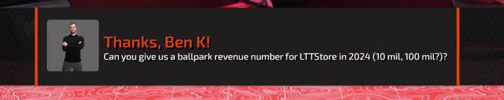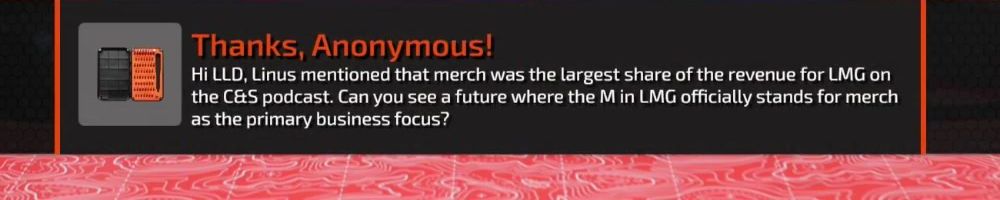 Hi LLD, Linus mentioned that merch was the largest share of the revenue for LMG on