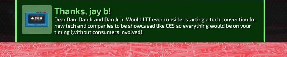 Dear Dan, Dan Jr and Dan Jr Jr-Would LTT ever consider starting a tech convention for new tech and companies to be showcased like CES so everything would be on your timing (without consumers involved)
