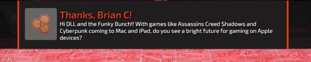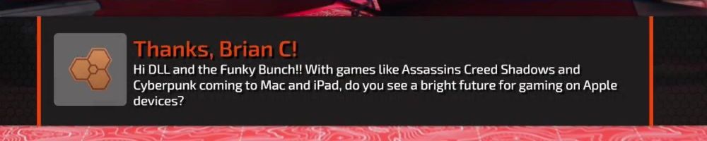 Hi DLL and the Funky Bunch!! With games like Assassins Creed Shadows and Cyberpunk coming to Mac and iPad, do you see a bright future for gaming on Apple devices?