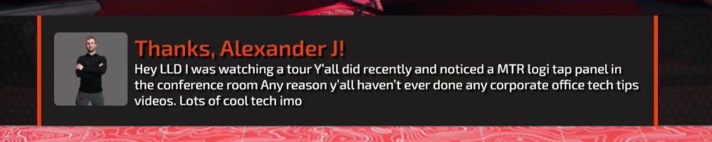 Hey LLD I was watching a tour Y'all did recently and noticed a MTR logi tap panel in the conference room Any reason y'all haven't ever done any corporate office tech tips videos. Lots of cool tech imo