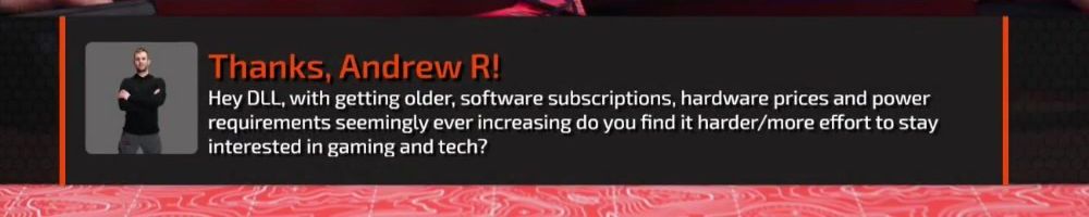 Hey DLL, with getting older, software subscriptions, hardware prices and power requirements seemingly ever increasing do you find it harder/more effort to stay interested in gaming and tech?