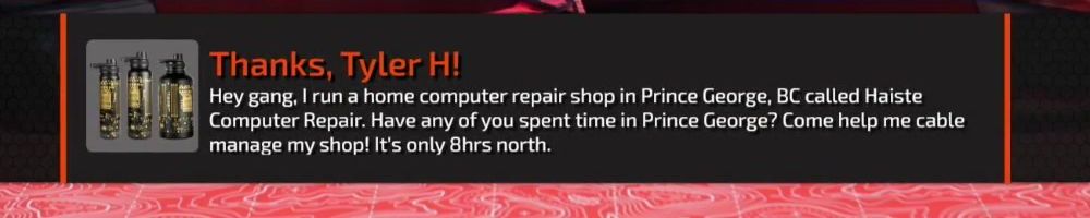 Hey gang, I run a home computer repair shop in Prince George, BC called Haiste Computer Repair. Have any of you spent time in Prince George? Come help me cable manage my shop! It's only 8hrs north.