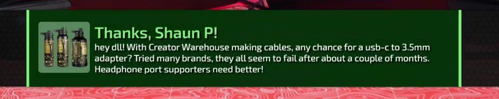 hey dll! With Creator Warehouse making cables, any chance for a usb-c to 3.5mm adapter? Tried many brands, they all seem to fail after about a couple of months. Headphone port supporters need better!