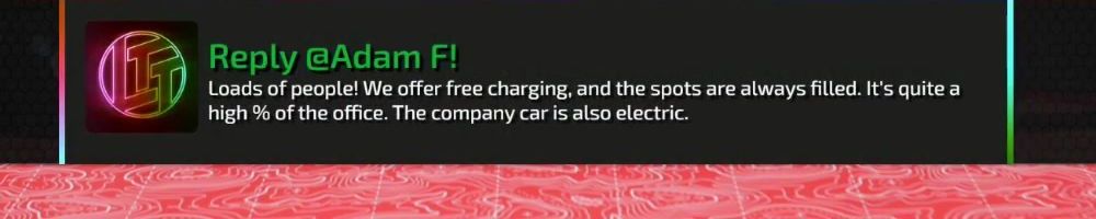Loads of people! We offer free charging, and the spots are always filled. It's quite a high % of the office. The company car is also electric.