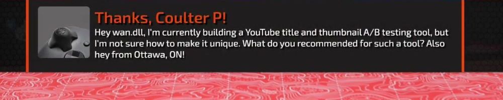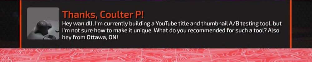 Hey wan.dll, I'm currently building a YouTube title and thumbnail A/B testing tool, but I'm not sure how to make it unique. What do you recommended for such a tool? Also hey from Ottawa, ON!
