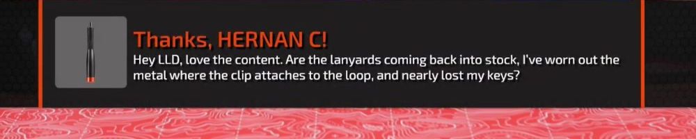 Hey LLD, love the content. Are the lanyards coming back into stock, I've worn out the metal where the clip attaches to the loop, and nearly lost my keys?