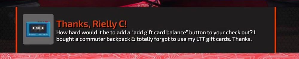 How hard would it be to add a "add gift card balance" button to your check out? I bought a commuter backpack & totally forgot to use my LTT gift cards. Thanks.