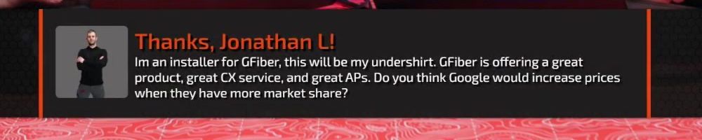 Im an installer for GFiber, this will be my undershirt. GFiber is offering a great product, great CX service, and great APs. Do you think Google would increase prices when they have more market share?